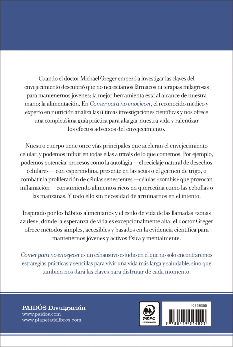 Con el rigor científico y la exhaustividad de datos e investigaciones que caracteriza el trabajo del doctor Greger, Comer para no envejecer es la mejor recopilación hasta la fecha de toda la información disponible sobre la ciencia de la longevidad y cómo podemos maximizar sus descubrimientos y beneficios a través de nuestra alimentación.