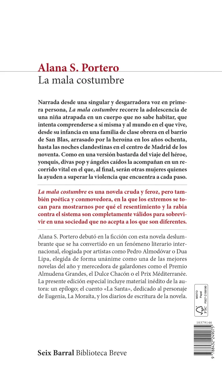 «Recomiendo leer La mala costumbre para hacerse una idea de cuánto sufrimiento, cuánto dolor, cuánto riesgo hay en el hecho de nacer en un cuerpo equivocado.» Pedro Almodóvar