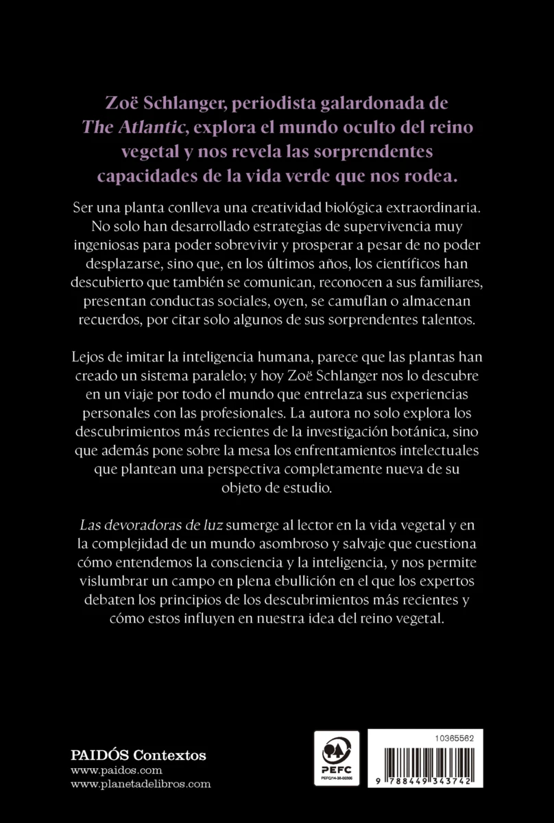 En un contexto de crisis climática global, Las devoradoras de luz ofrece una reflexión sobre nuestra dependencia de las plantas y nos invita a repensar nuestras relaciones con el mundo vegetal desde un enfoque cultural y ético para acabar ofreciéndonos una visión holística de nuestro lugar en el ecosistema.
