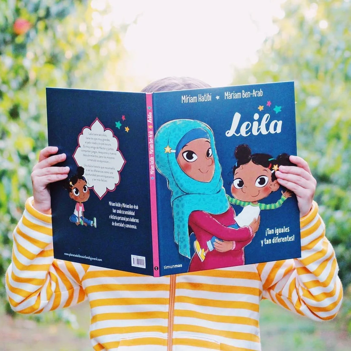 Leila tiene seis años. Tiene los ojos muy grandes, el pelo rizado y la piel morena. No tiene hermanos, pero tiene muchos amigos en el colegio.