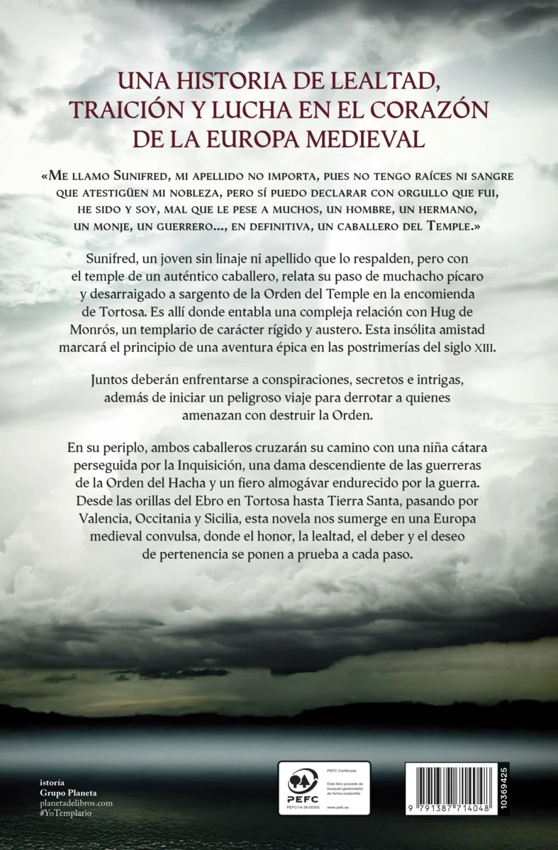 «Me llamo Sunifred, mi apellido no importa, pues no tengo raíces ni sangre que atestigüe mi nobleza, pero sí puedo declarar con orgullo que fui, he sido y soy, mal que le pese a muchos, un hombre, un hermano, un monje, un guerrero..., en definitiva, un caballero del Temple.»